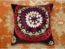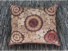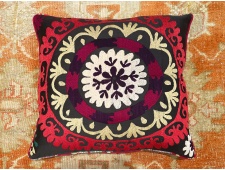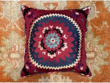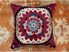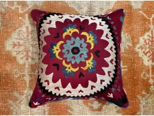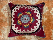 antique Gujurati pillow- red+yellow thorn stitch 18x18"