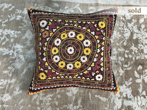antique embroidered gujarat, india 24 x 24" reverse in linen knife edge, hidden zipper *pillow inserts not included *FINAL SALE