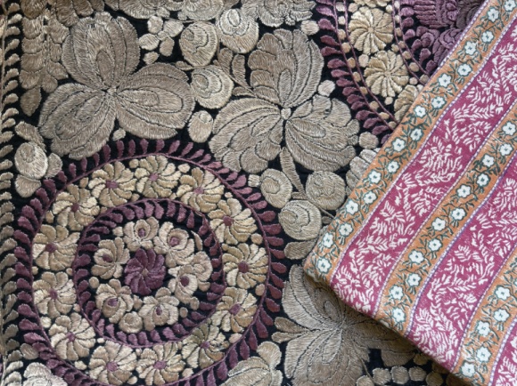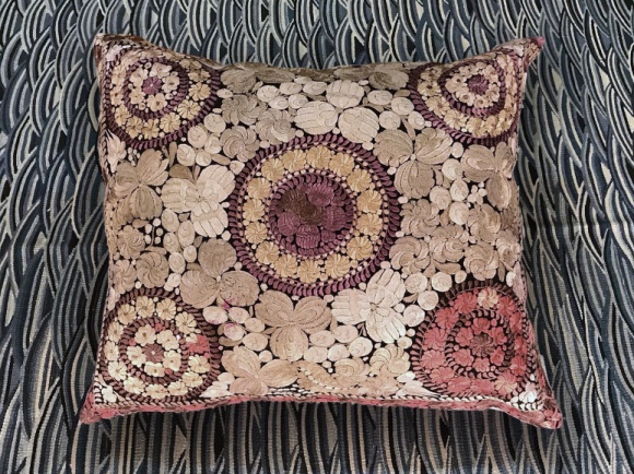 vintage embroidered matyo hungary 29 x 33" reverse in "tulu otto pink silk khadi" knife edge, hidden zipper *pillow inserts not included *FINAL SALE