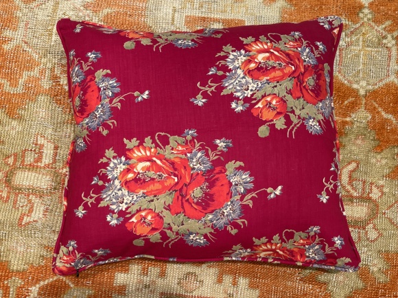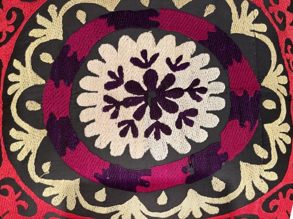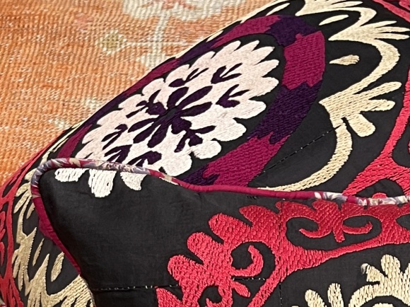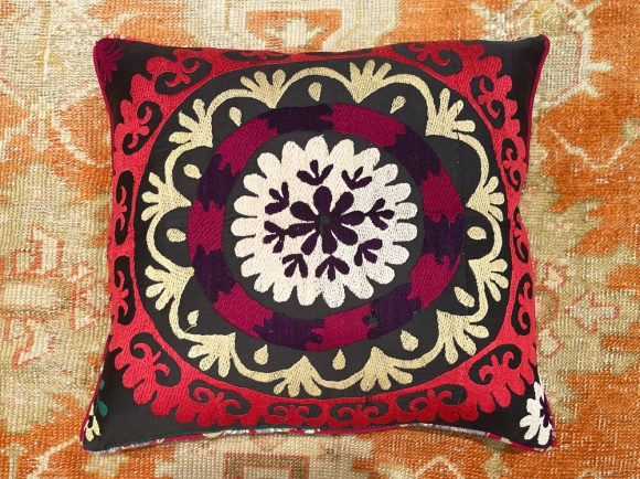 vintage Uzbek suzani, 24x x24" reverse in vintage Russian roller print piping edge, hidden zipper *pillow inserts not included *FINAL SALE