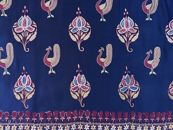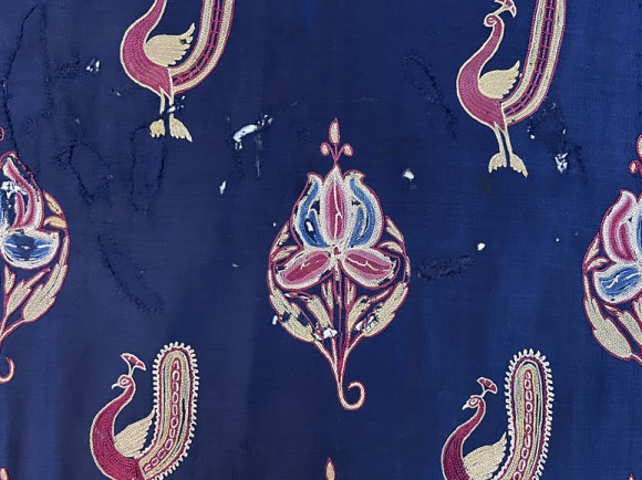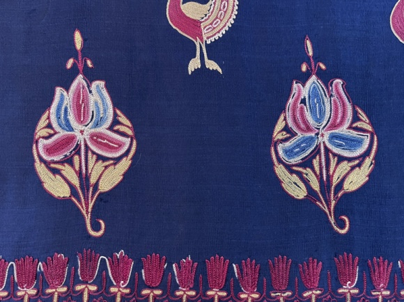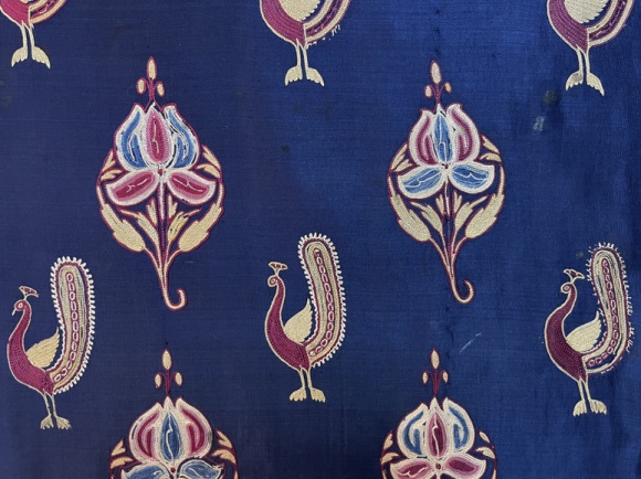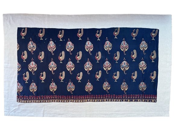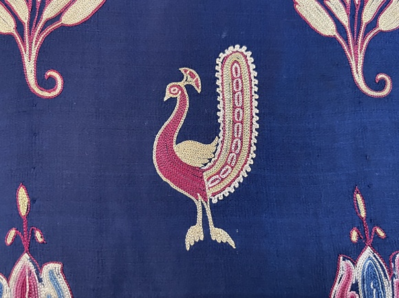 late 19th century, Gujarat delicate chain stitch embroidery, peacocks and flowers, fine condition, 23 x 44" *FINAL SALE