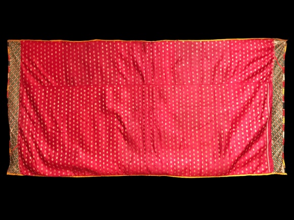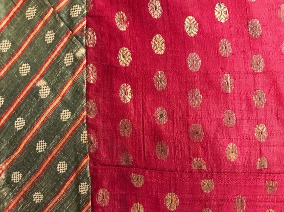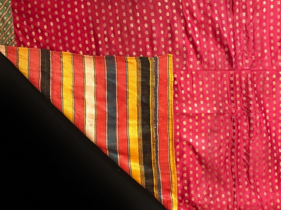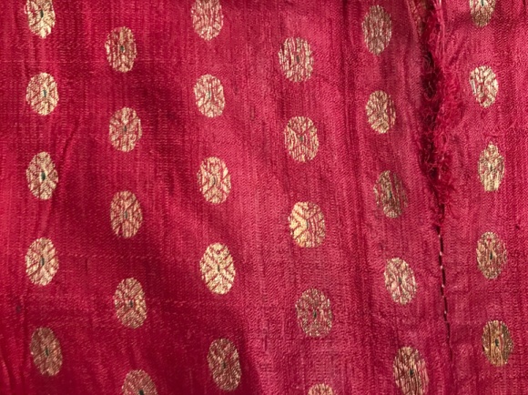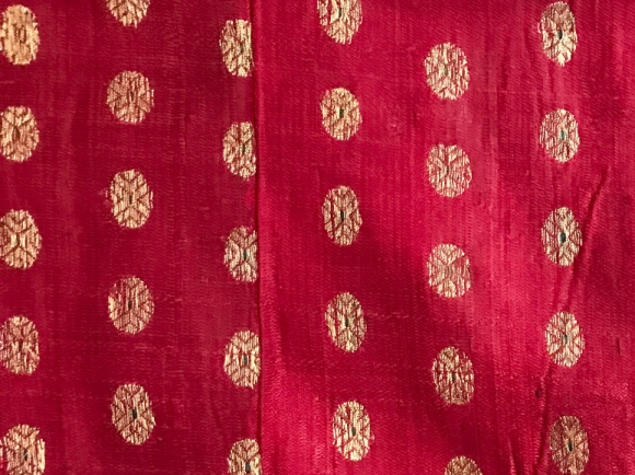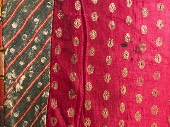 antique indian brocade, mid 19th century, gold, metal and silk, reverse ikat stripes, good condition, 32" x 67" *FINAL SALE