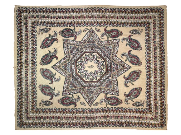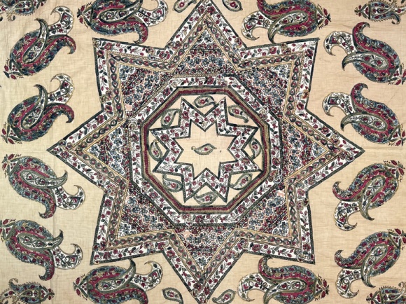 antique kandilli block print, cotton, excellent condition, 67" x 80" *FINAL SALE