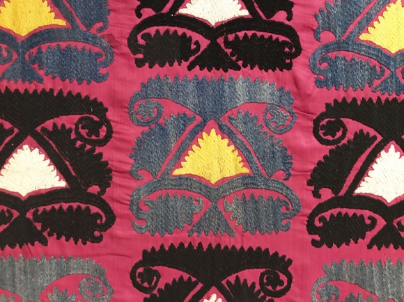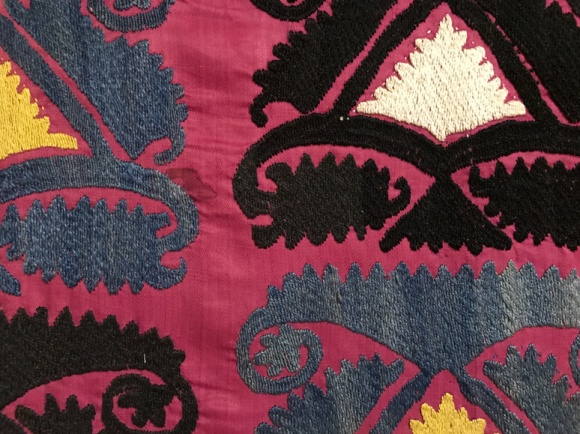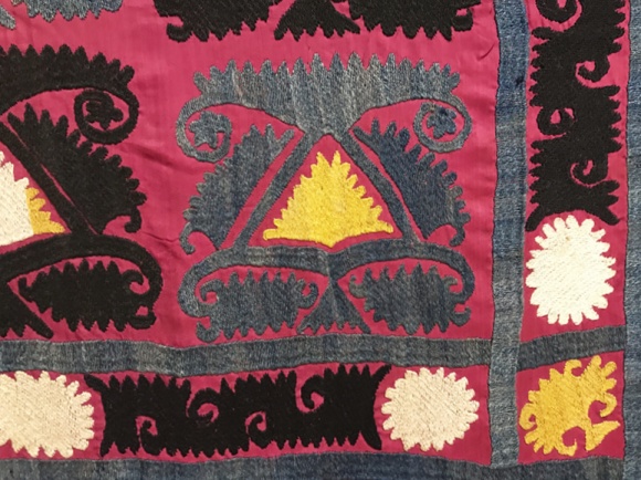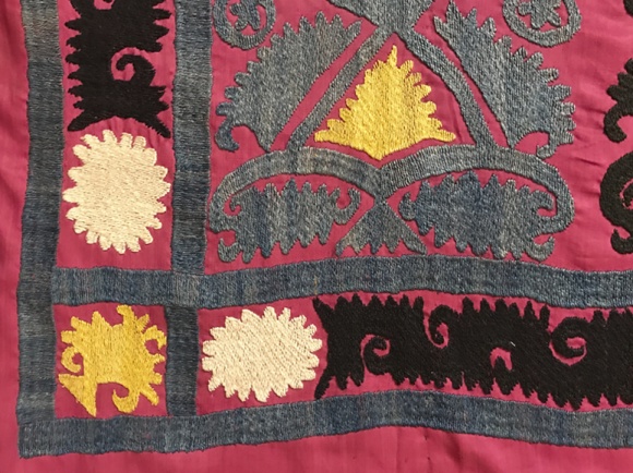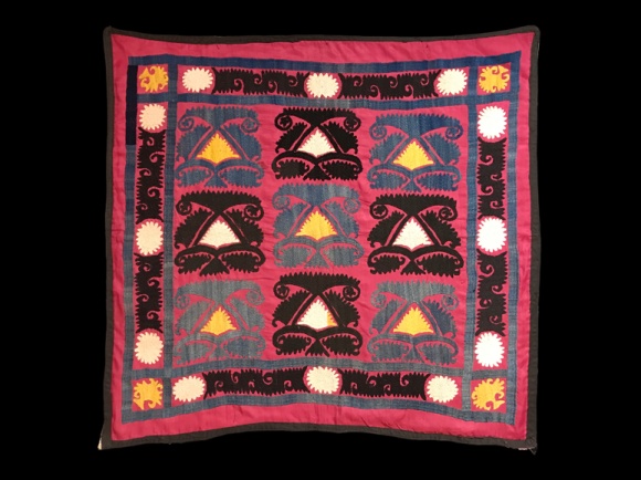 uzbek suzani, embroidered silk on cotton base, very good condition, 37" x 37" *FINAL SALE